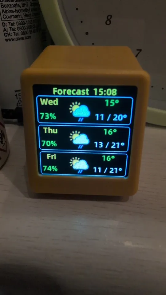 Smart Desk Companion – Wifi Clock with live weather, 3 day forecast and custom picture / gif display.Additional information