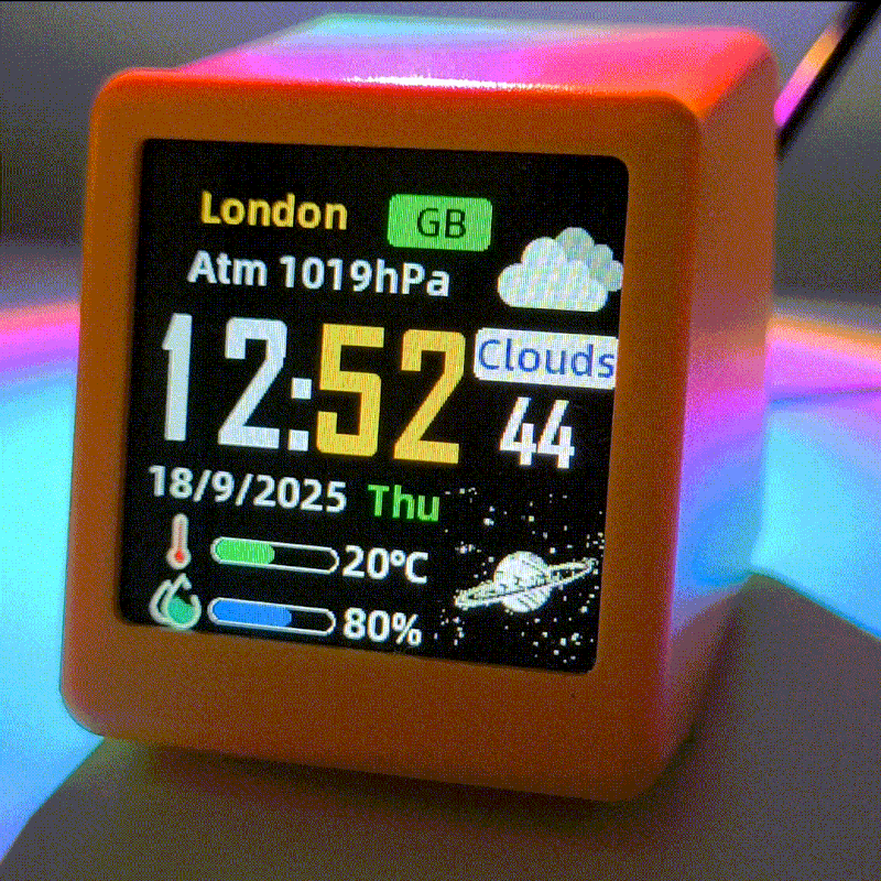 Smart Desk Companion – Wifi Clock with live weather, 3 day forecast and custom picture / gif display.Additional information